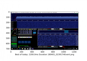 Captures von Events werden mit Schwellwerten automatisch von SpectrumLab erzeugt und nachträglich visuell ausgewertet. SDR-Play und NooElec NESDR SMArt Dongle arbeiten mit VB-Audio Virtual Cable, aber mit einer Anpassung in der Empfindlichkeit der SpectrumLab Scripts (abgestimmt auf Soundkarte) haltensich die ‘false positives’ in Grenzen. Eine automatische Statistik geben die Rohevents nicht her, aber automatische Bilder durchaus.